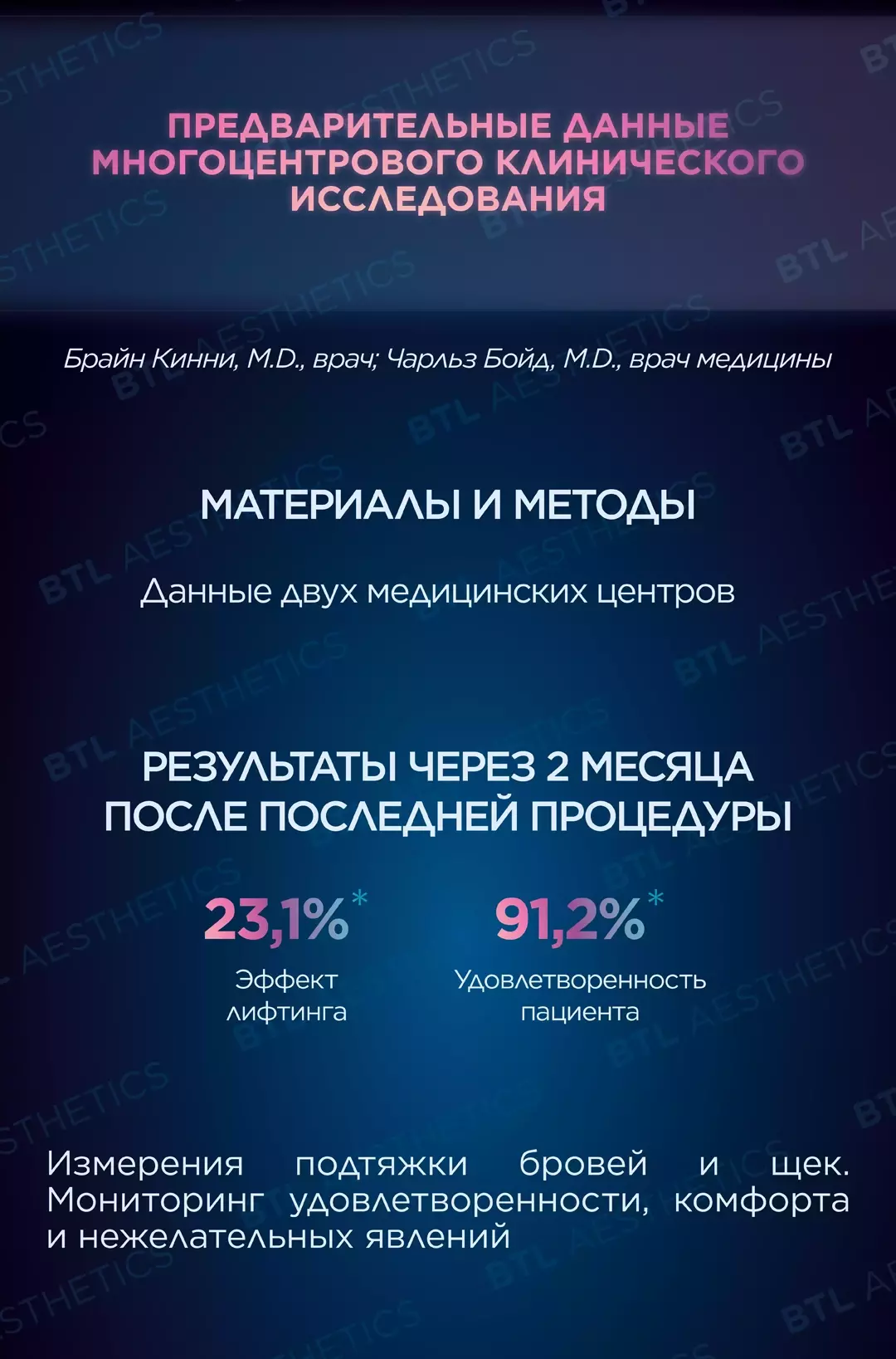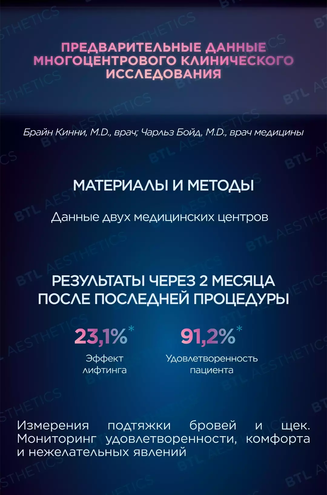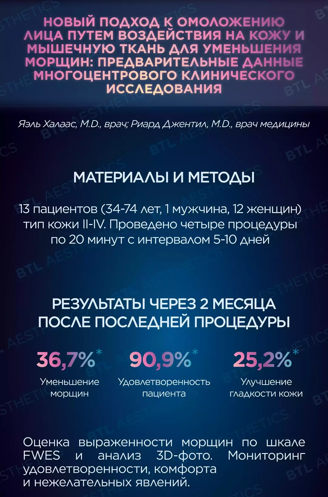 95% удовлетворенность пациентов результатами после курса процедур. Клинические показатели одновременного воздействия синхронизированного RF и HIFES®
